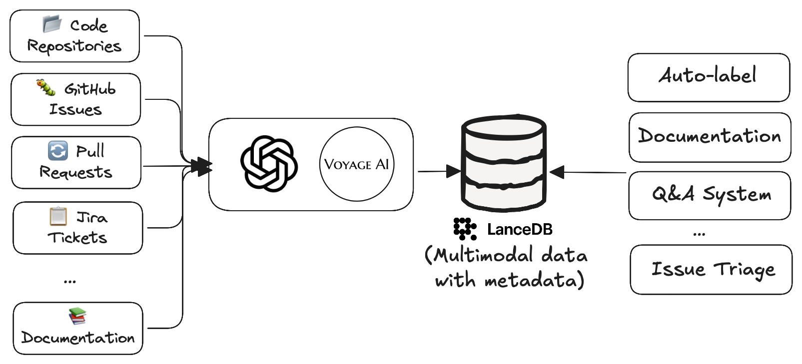 Real-Time Synchronization LanceDB enabled seamless, continuous ingestion from diverse sources like GitHub, issue trackers, and Slack, indexing data in real time so AI assistants always worked with the most up-to-date context.